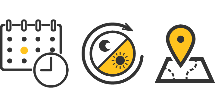 日時・曜日・時間帯・位置情報などの条件に応じて、
