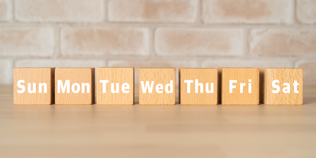 平日・休日で異なるコンテンツ表示が可能。店舗運営や施設案内など、実運用に即した活用ができます。